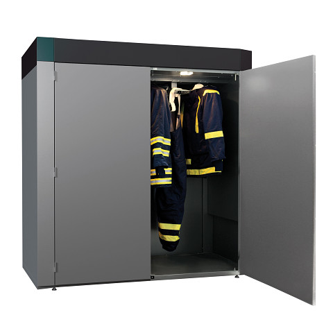 Een droogcabine speciaal ontwikkeld voor het veilig en efficiënt drogen van kostbare of specialistische kleding? We have it. In deze statische droogcabine passen tot zes volledige uitrustingen, die door een zacht en gecontroleerd droogproces zonder wrijving worden gedroogd. Dankzij het innovatieve restvochtigheidssysteem wordt de vochtigheidsgraad continu gemeten, zodat exact bepaald kan worden wanneer de kleding droog is. Deze oplossing wordt ingezet in onder andere brandweerkazernes, nautische omgevingen, zorginstellingen en attractieparken, waar kwetsbare of waardevolle kleding zorgvuldig behandeld moet worden.